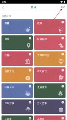 4、确认选择后完成栏目定制。