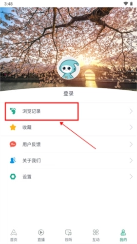 2、在个人中心选择"浏览记录"功能;