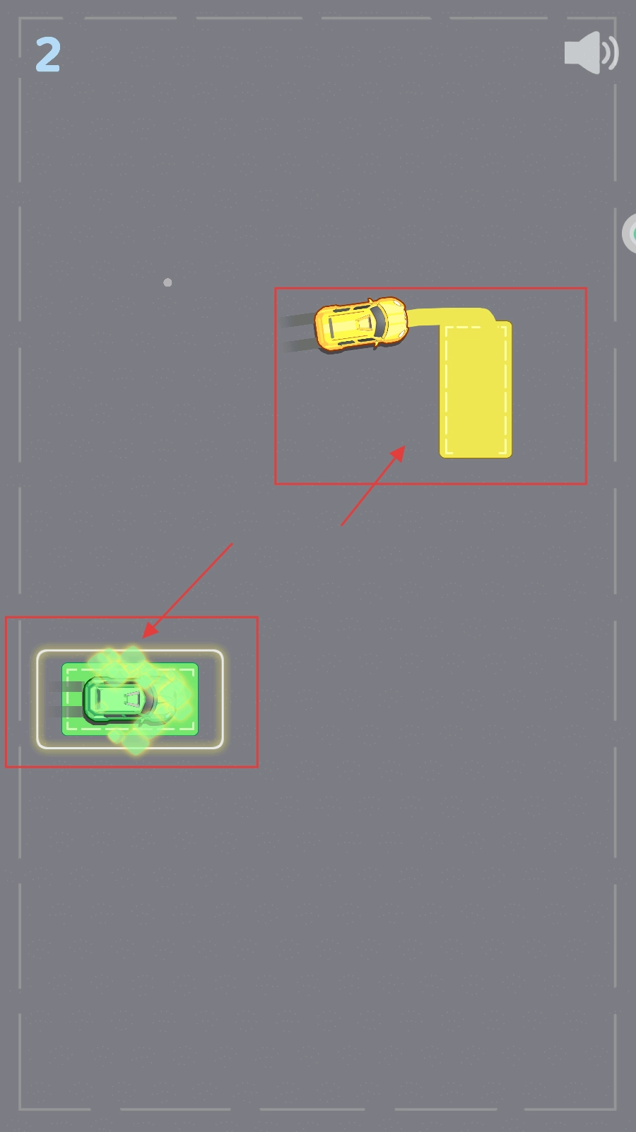 进入游戏第二关后,首先要操控黄色小车,观察黄色车位的朝向,然后规划好行驶的路线。