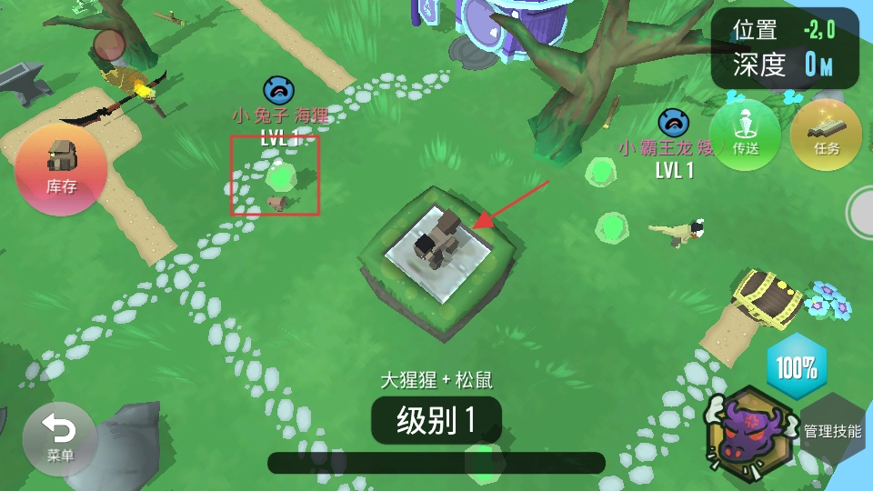 跟着任务,靠近绿色小怪,击败后会获得经验。