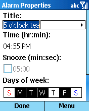 Chronos是Windows Mobile系统的时间系统插件。使用本软件可设置无限多自定义铃声(MP3和OGG格式)的闹铃提醒和计时器。 有2次周期性倒计时提醒,帮助你控制时间进度。 支持QVGA和WM2005操作系统。