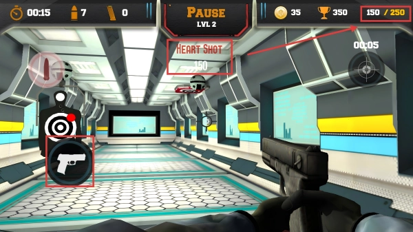 在【Level2】关卡里,使用7颗子弹,努力达成【HEARTSHOT】高光表现,积累足够分数以完成目标,从而推进关卡进度。