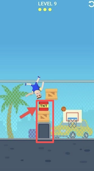 进入LEVEL9后,借助TNT爆炸来清除前方的挡路障碍,同时规划好弹道路径,从而完成投篮任务。