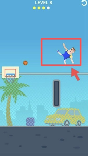 在第八关中调整角色的站位与投篮角度,保证篮球能绕过障碍物顺利投进篮筐。