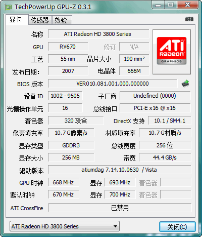 总线接口/BusInterface:此处显示显卡和主板北桥芯片之间的总线接口类型以及接口速度。