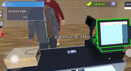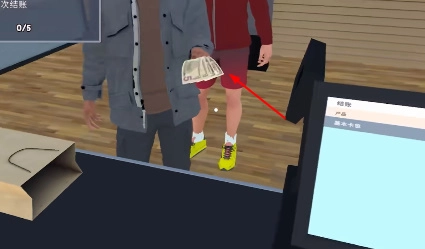 操控角色到收银台,客人就会把商品摆出。