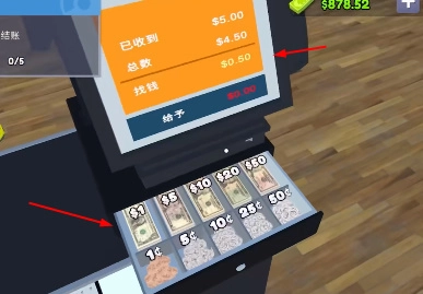 客人会付账,需要通过点击钞票来完成交易。