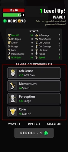 角色升级后会出现对应的升级选项供玩家挑选,从而获得相应的属性提升。