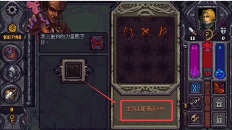 向他索要一件珍贵物品,属性会依据职业随机生成,存在属性降低的可能性。