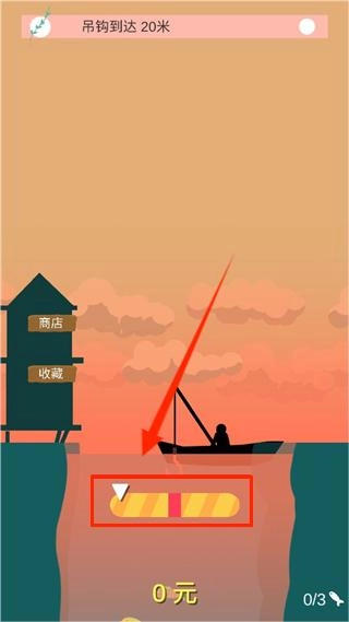 当指针指向红色区域时,鱼竿就能甩得更远,钓到的鱼自然也会更多。