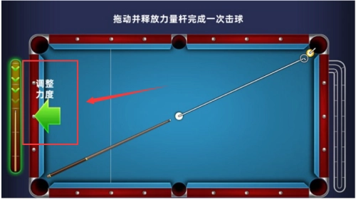 箭头所指的左侧区域用于调节击球力度,向下拖动可进行蓄力,松开手指就能完成击球动作。