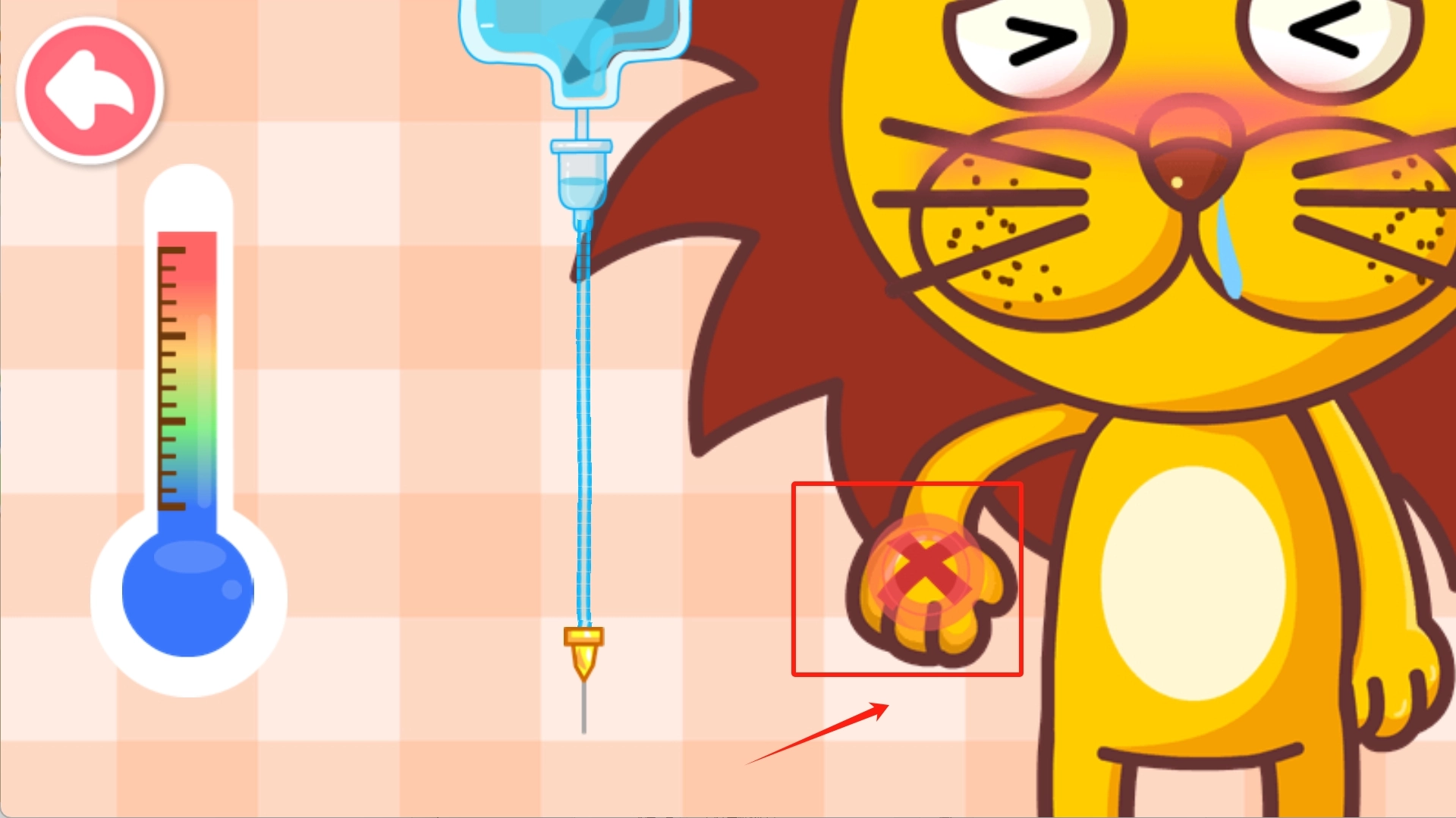 从右侧给出的治疗方式里选一种为小动物医治,有好几种选项可选,这次我们挑打吊针这种方式,现在点击屏幕就能给患病的小动物打针啦。