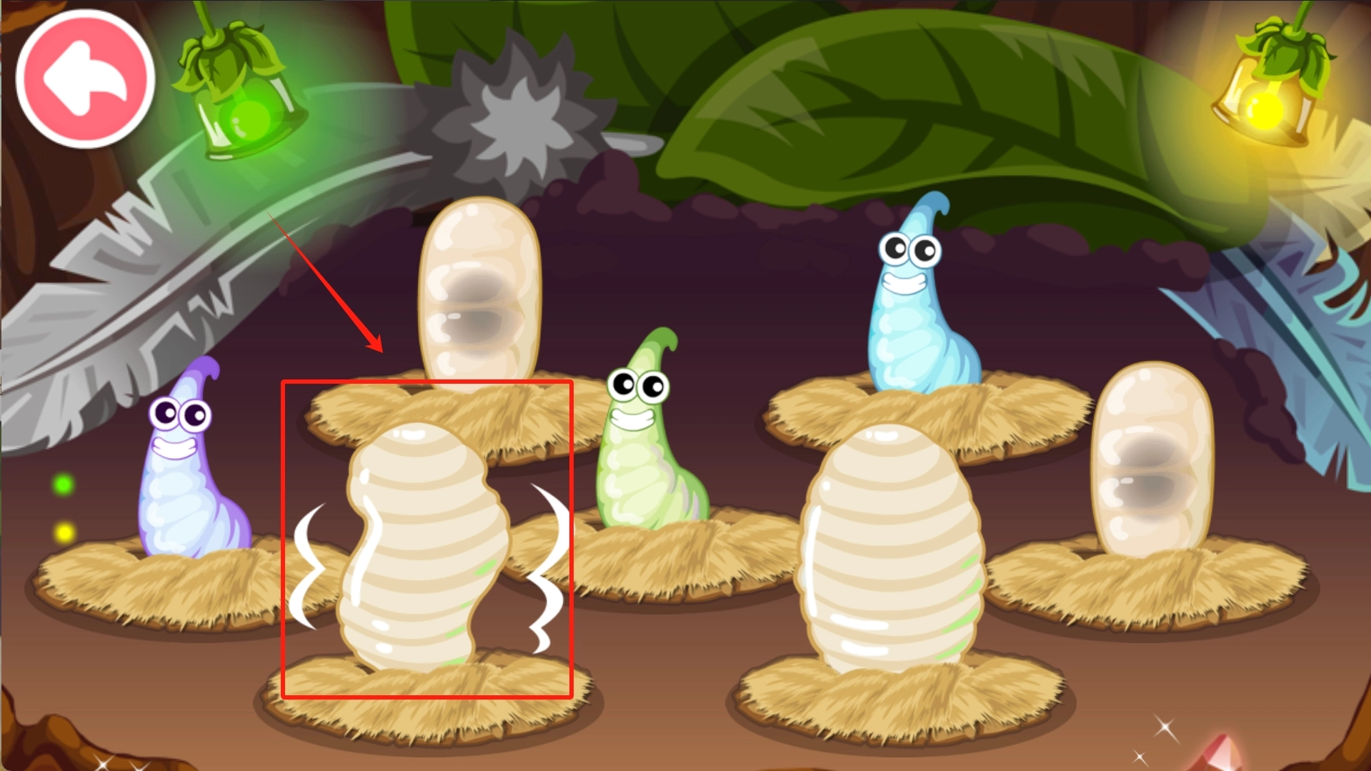 这里有各种各样的蚂蚁蛹,只要点击这些蛹,就能孵化出不同的蚂蚁宝宝。