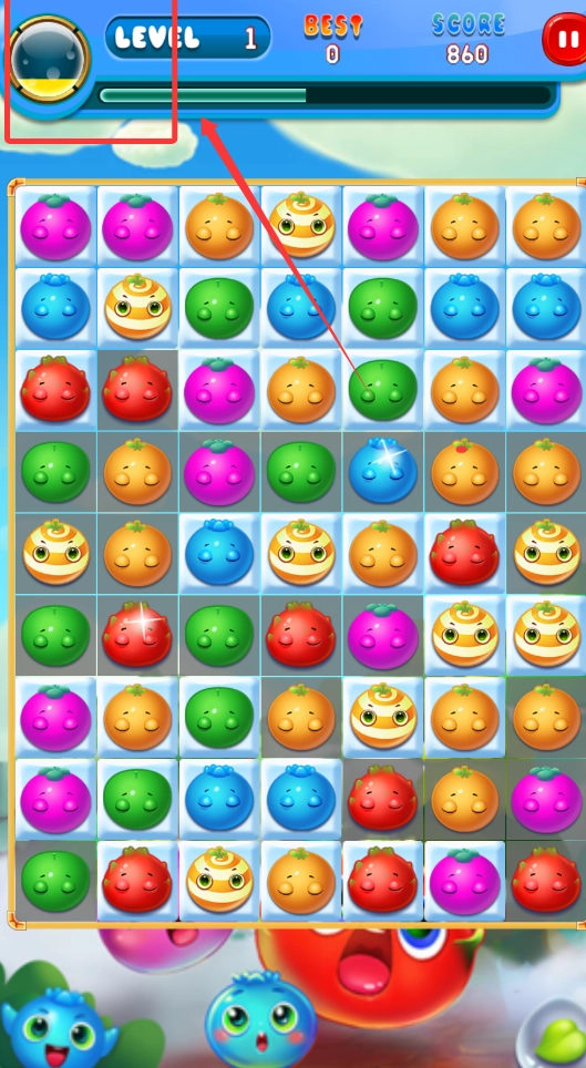 3,通过消除水果让能量球集满,就能助力我们迅速消除水果排列。