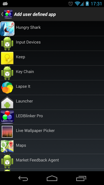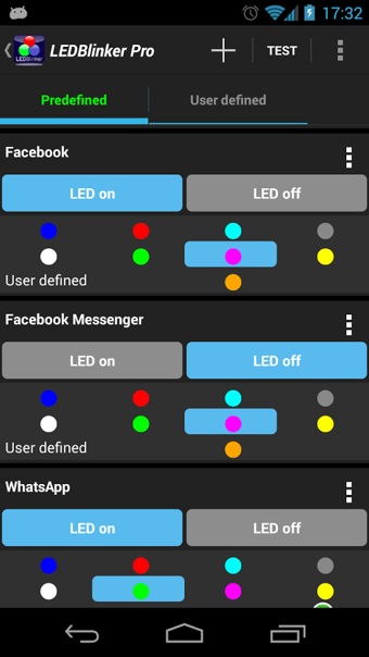 单独设置(闪烁频率,振动,声音,弹出),用于每个应用程序成为可能(见第3小点旁之应用程序名称)!现在支持所有的应用程序,点击顶部的+按钮!