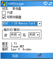 将 Windows Mobile 5.0 Smartphone/PocketPC 直接当优盘用,支持作为启动优盘功能。是 Windows Mobile 下非常实用的一个小软件。1.73 版本修改了一些 BUG,提高了兼容性。