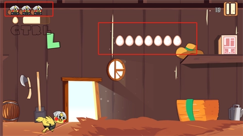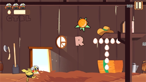场景里会时不时出现鸡蛋供玩家收集,玩家得合理安排自己的跳跃槽和生命值,争取拿到更出色的成绩。