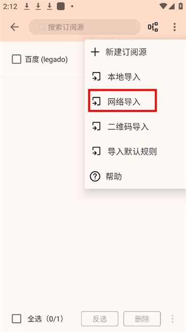 4.在本站当前页面的特别说明中复制其中一条书源链接(可任意选择),把它粘贴到弹出的【网络导入】栏内,然后点击【确定】按钮。