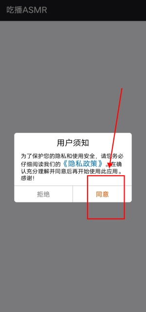 打开吃播ASMR果冻大师,点击“同意”。
