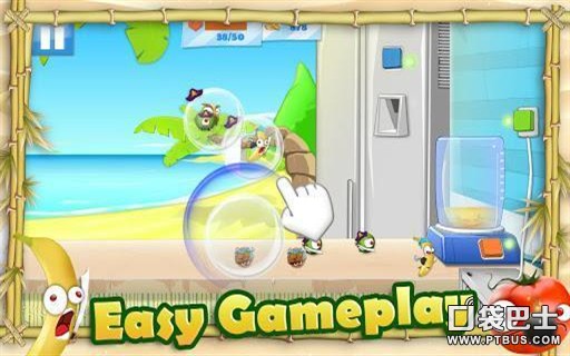水果复仇战 是一款新颖十足的塔防游戏,因为游戏将背景设定在了榨汁机中。很多年来,你都喜欢喝鲜榨果汁,但是,多少无辜的水果为了你的爱好而丧命在榨汁机里。现在,愤怒的水果们要反击了,它们的第一个战略目标就是摧毁你的榨汁机,而你必须保卫榨汁机!水果组成的大军向榨汁机发起进攻,从苹果到香蕉到西瓜,每种不同的水果都有自己独特的进攻方式。你要点击橙色按钮操作榨汁机、蓝色按钮操作冰块制造机、绿色按钮操作风扇等来对它们进行防御,并且用手指在屏幕上画圈将水果困在气泡中,然后抓起来送入榨汁机。你要消灭所有的水果才能进入下一关卡,你所获得的金币还能升级自己的能力。快来比比看你和水果谁厉害吧~