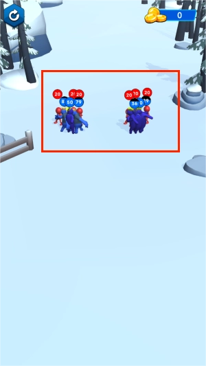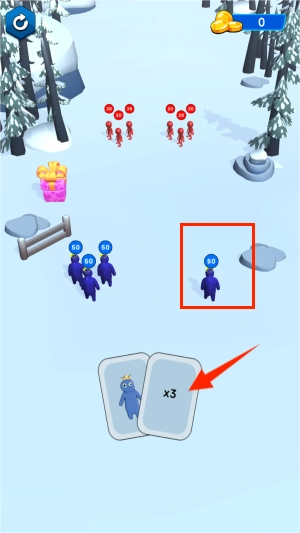 开始对决,蓝色代表我们自己,红色代表敌人。