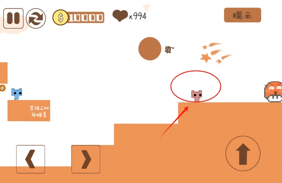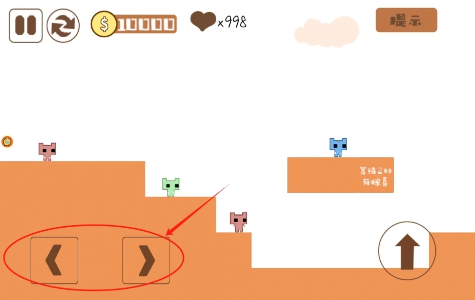 左右为前进键,右边是跳跃键。