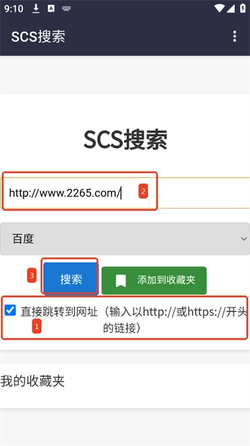 先勾选“直接跳转到网址”选项,随后在搜索框中输入以http://或https://开头的链接,再点击搜索按钮即可。