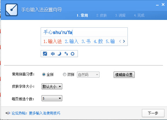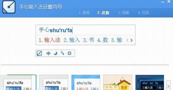 4. 手心输入法支持换肤功能,提供了皮肤管理界面,所有皮肤一目了然。内置了十款精美皮肤,更多皮肤正在制作中,会陆续推出。