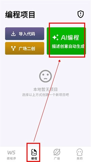 2. 前往【编程】板块,点击“AI编程”