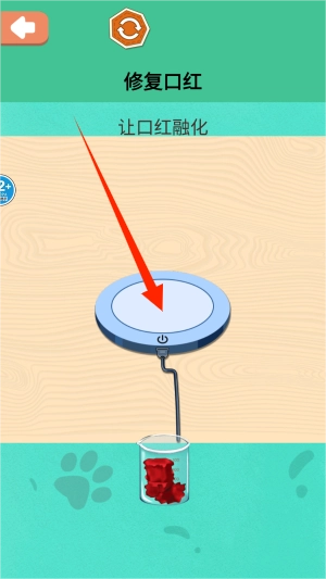 启动程序后,点击主界面的“开始游戏”按钮,画面就会呈现出破碎的口红以及修复工具台。
