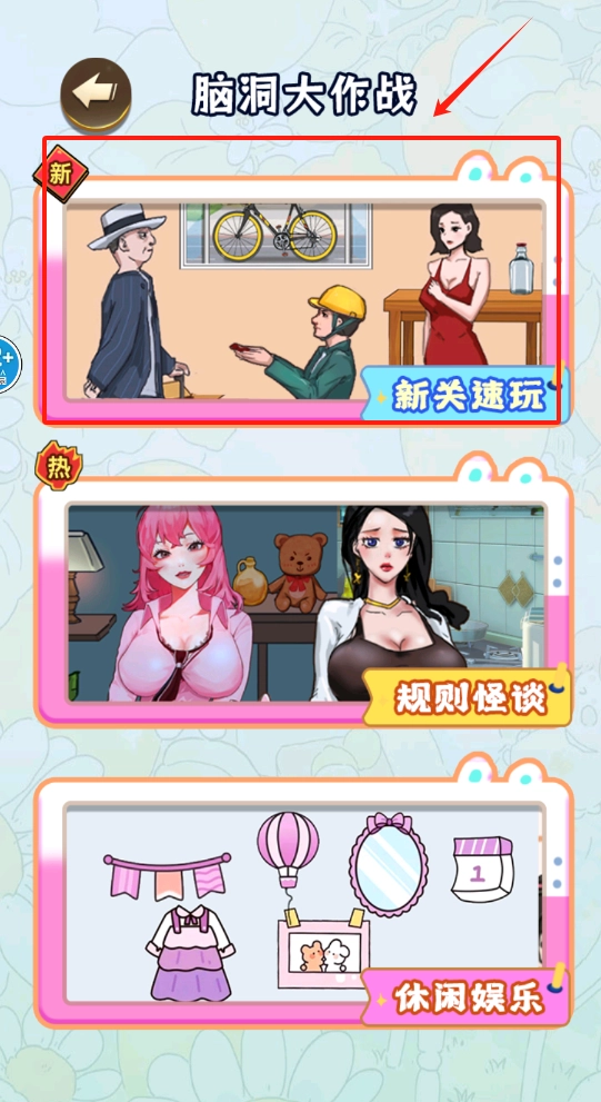滑动屏幕查看三个关卡标签,选择新关速玩或规则怪谈开启挑战。