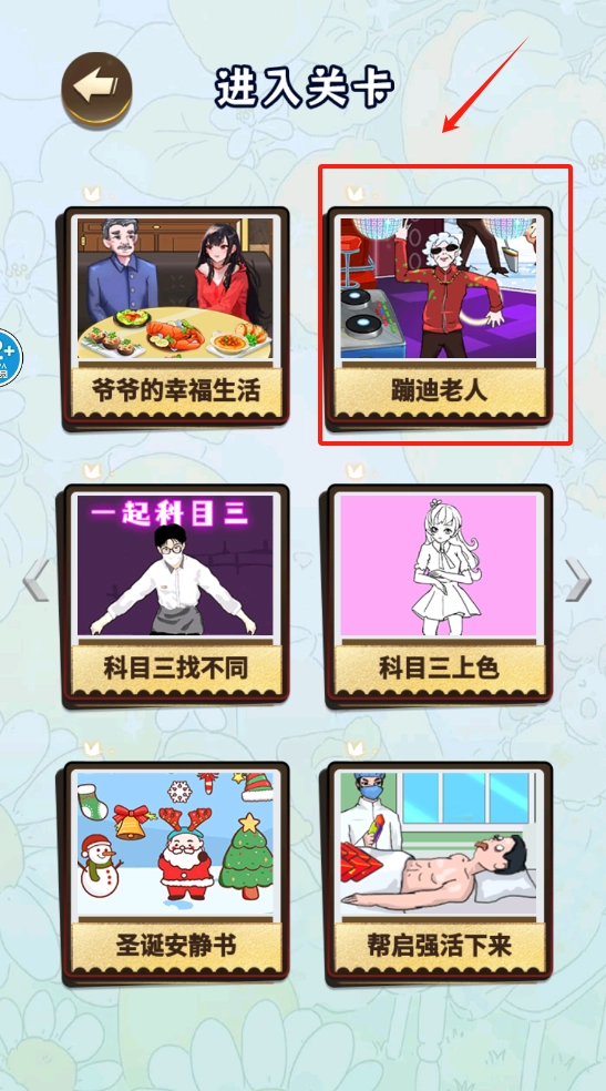 点击右上角的蹦迪老人图标,就能进入对应的关卡,体验跳舞玩法了。