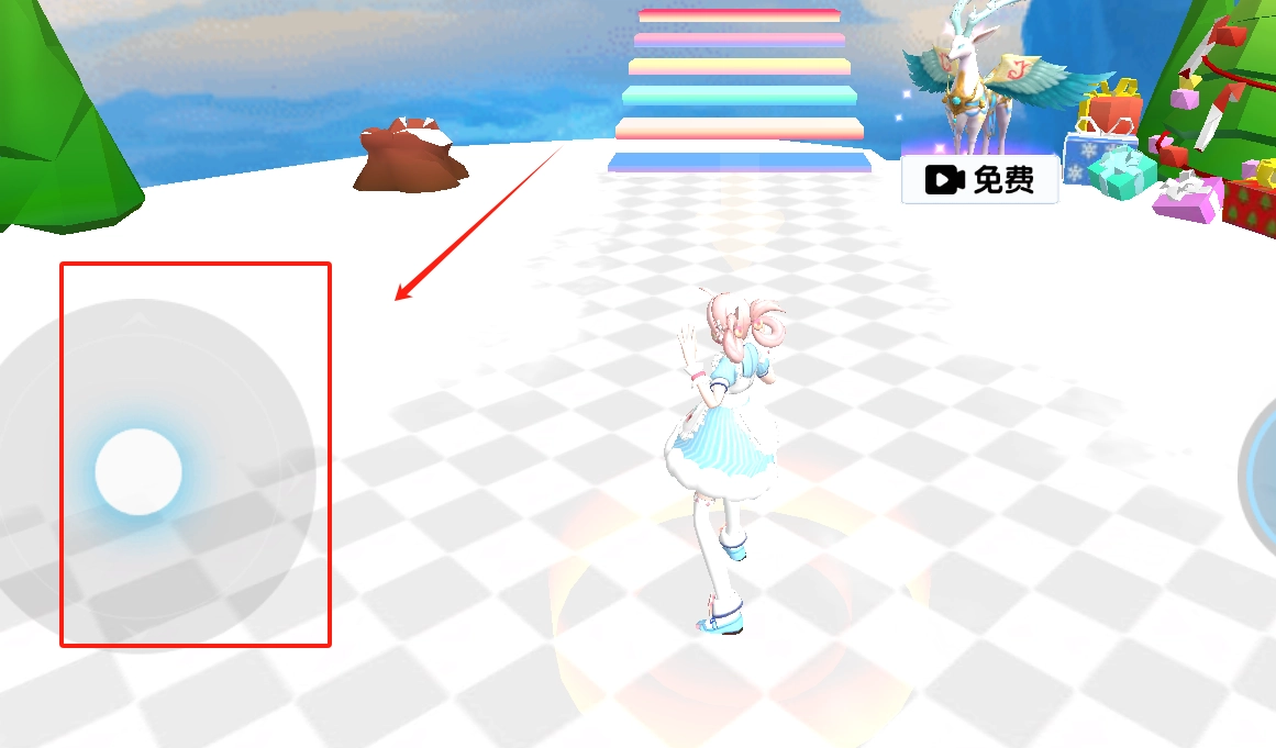 点击红框内的圆形按钮,即可领取免费道具,其旁边还伴有带翅膀的兔子与礼物。