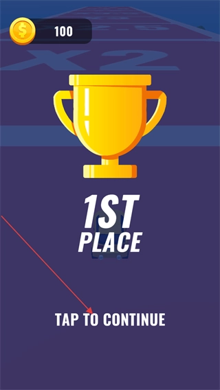 在完成赛程并取得1STPLACE名次后,界面会呈现奖杯奖励,点击TAPTOCONTINUE按钮就能推进后续的游戏进程。
