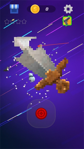 进入游戏后,点击界面上的红色瞄准按钮,瞄准目标像素物体进行攻击,从而推动当前关卡的进度。