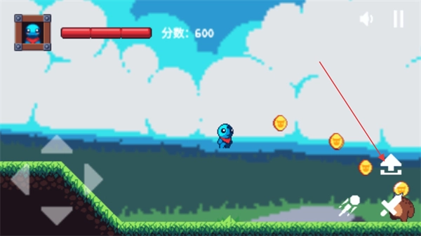 进入关卡后,可通过左侧方向键控制角色移动,收集场景里的金币,以此推动关卡进度。