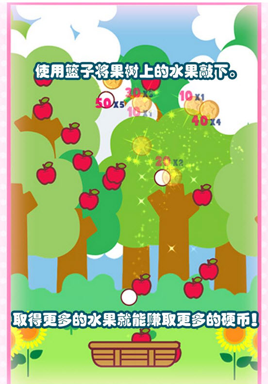 - 熟悉而具挑战性的游戏,记得睁大眼睛留意觊觎水果的那些讨厌的虫子和小鸟。- 八种不同的道具可以升级使用,你可以用篮子和球顺利地采集水果。