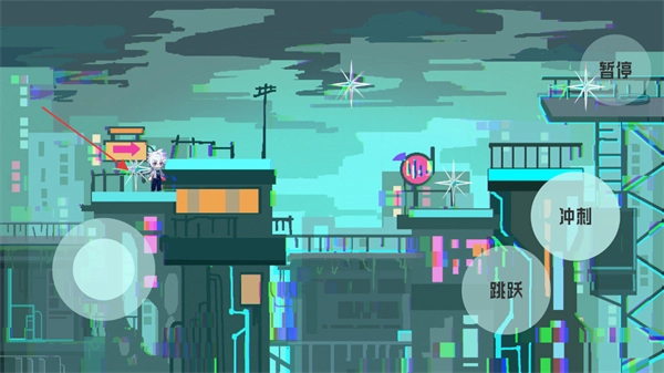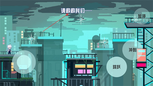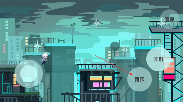在游戏进行时点击跳跃按钮,就能操控角色完成跳跃动作,借助这一操作跨越场景中的建筑类障碍物,从而推动关卡的游玩进程。