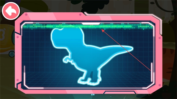 这个界面是恐龙扫描环节,需要等待顶部进度条加载完成,完成后就能进入后续针对该恐龙的互动环节。