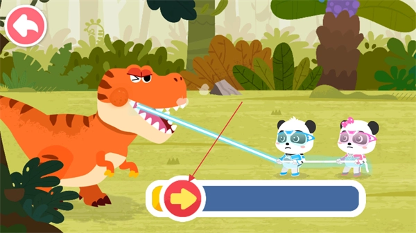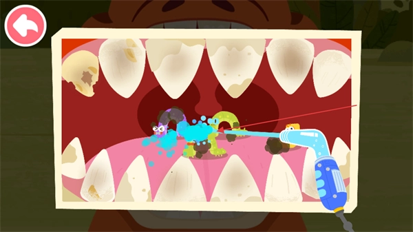 在帮助恐龙拔牙的环节里,需要通过操作界面上的箭头按钮来配合完成拔牙动作,直到这个环节的任务全部完成。