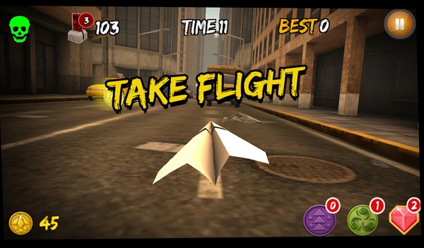 这款纸飞机的冒险旅程PaperChase是一款采用了第一视角的跑酷类游戏,游戏模拟了大家小时候经常玩的纸飞机游戏。游戏场景却有些违和的选择了大都市的街道,这架纸飞机飞出后,会像大部分跑酷游戏一样走直线而不是纸飞机应有的曲线。在这条直线上,会有金币和各种奖励品,玩家需要左右、上下晃动屏幕躲开信号灯、车辆等障碍物,然后尽可能在规定时间内达到目的地。童年的时候折过纸飞机吗?每次折好是不是都希望我们的飞机能够飞得很远很远。现在,玩玩这款游戏吧,它将找回我们童年的记忆。控制你的飞机穿梭于大街小巷吧,小心不要撞到墙了哦~
