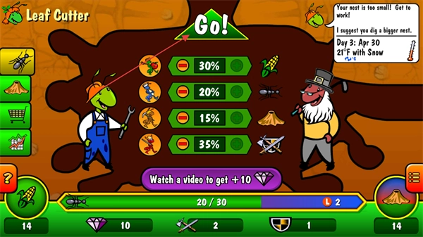 优化资源获取方式和族群发展节奏,不用长时间积累就能升级蚁巢、增强士兵实力,这样就能把精力都放在战斗策略制定和族群管理上了。