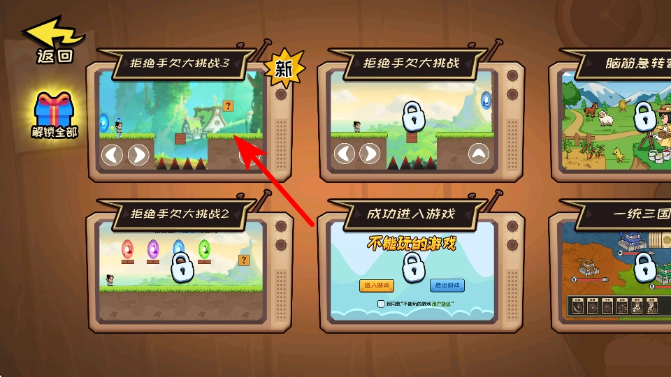选择对应关卡的入口,进入拒绝手欠大挑战3的关卡流程,开启该关卡的解谜冒险玩法。