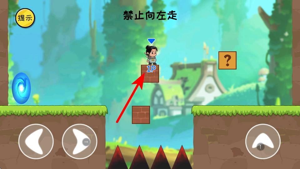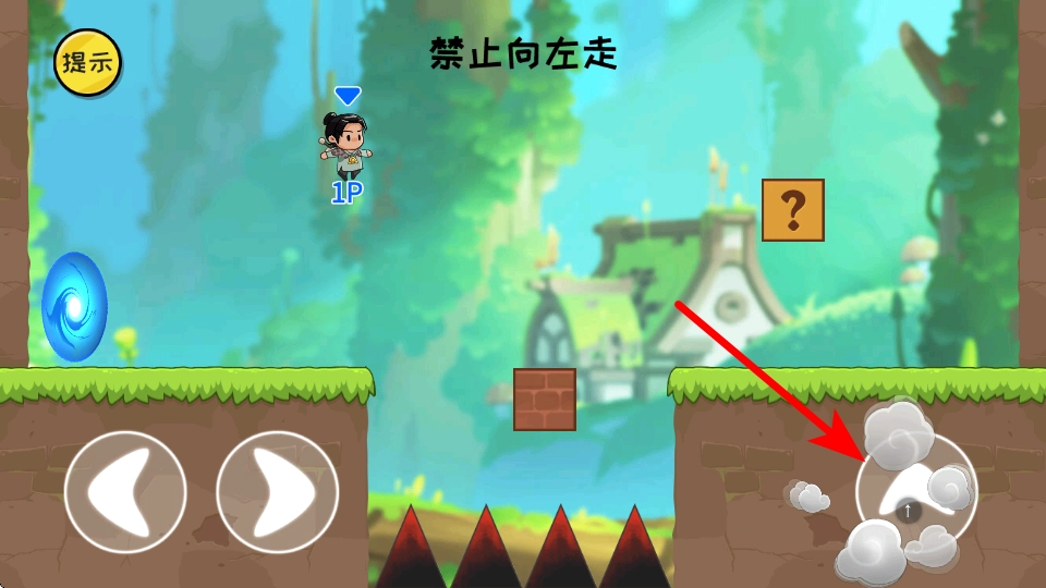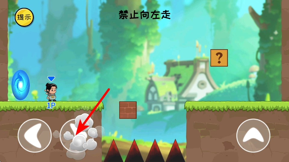在关卡里要遵守不能向左行进的规则,还要躲开下方的尖刺陷阱,利用云朵元素来调整移动的路线。
