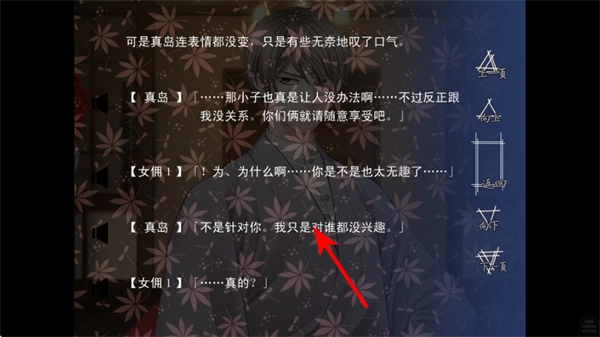 点击对话界面右侧的功能按钮,就能切换不同的交互选项,参与角色间的对话互动,从而解锁后续的剧情内容。