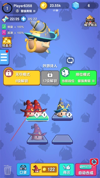 拖动不同板块上等级相同的法师进行合成,就能得到更高等级的法师。