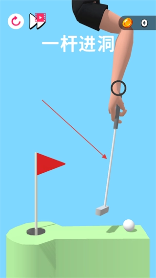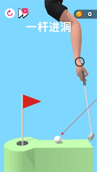 精准击球,让球落入洞中,完成一杆进洞挑战。