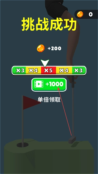 挑战成功后能领取金币奖励,还可以通过观看视频来获取更多金币。