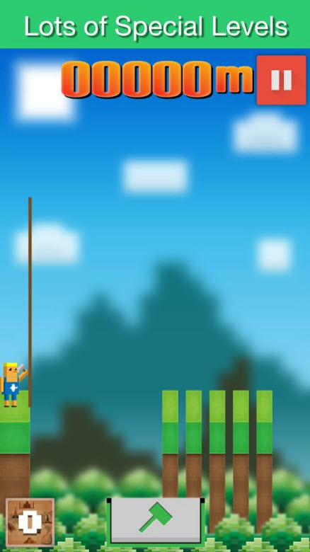 为我搭桥安卓版游戏玩法简单,点击锤子标记,桥会竖直伸长,估计两座山之间的距离,松手,桥会倒下,在两座山之间搭起一座桥。需要注意的是,桥太短,主角会掉落,桥太长,主角也会掉落。【游戏特点】