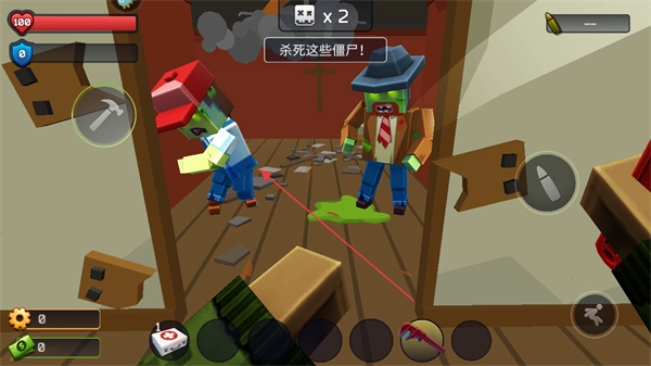 战斗场景被设定在封闭的房间里,空间十分紧凑,僵尸会从多个方向不断逼近,玩家需要灵活地调整自己的站位和攻击策略,这非常考验近距离作战的技巧以及应急反应的能力。